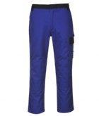 Pantaloni ergonomici in Kingsmill cotone 35% e poliestere 65%, colori vari. Chiusura con cerniera e gancetto. Varie tasche sui fianche e sulle gambe. Tasca portametro e Anello portamartello. Girovita elasticizzato con passanti per cintura. Tasche portaginocchiere alle ginocchia. Ginocchia ergonomiche. Inserti riflettenti alle caviglie. Peso al mq. gr. 300. Da abbinare a giacca codice POR TX33
