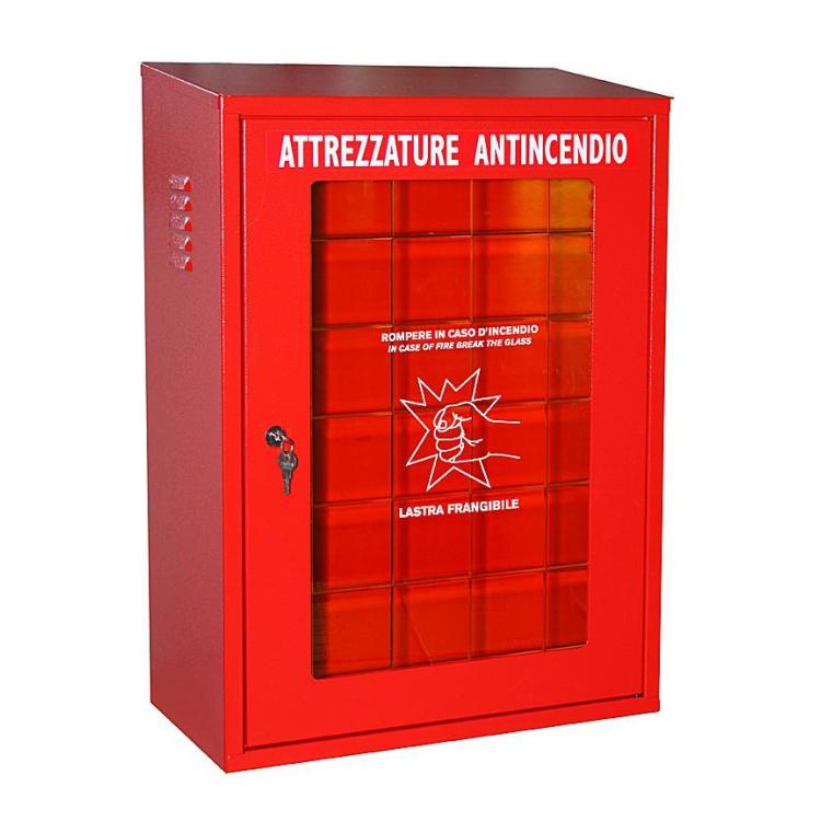 Armadio DPI  1 anta completa di lastra frangibile Realizzato in lamiera di ferro verniciata a polvere RAL3000.Dimensioni (LxPxA) 50 x 26 x 70 cm