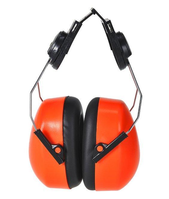 Cuffie antirumore colore arancione fluo. Idonee per essere agganciate agli elmetti con codice POR PW54 e POR PW55 e por ps53.Attenuazione media (SNR) 29 dB. Certificazioni: EN 352-3