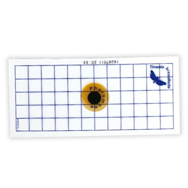 Dispositivo di monitoraggio per rilevare la presenza di Tignole dei tessuti (Tineola bisselliella e Tinea pellionella), preattivato con feromone specifico.