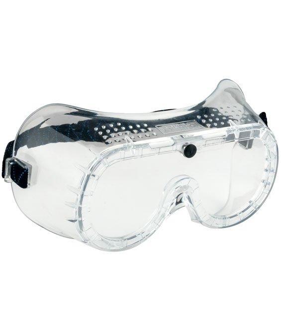 occhiali a mascherina in PVC morbido, elastico di tenuta e lante in policarbonato neutra antiappannamento. Ventilazione ai lati tramite fori di areazione. Certificazioni: EN 166 1 B