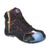 Scarpe alte antinfortunistiche di sicurezza, con tomaio in pelle nabuk impermeabile e traspirante. Puntale in composito rinforzato sul tomaio e lamina antiforo. Fodera impermeabile in materiale traspirante e assorbente/deassorbente al sudore. Suola di usura in poliuretano bidensità, ergonomica per la massima aderenza al terreno ed una migliore resistenza allo scivolamento e all’abrasione con resistenza al calore fino a 200 °C per un minuto. Categoria di protezione S3 WR Suola antistatica, tallone defaticante e suola antiolio.