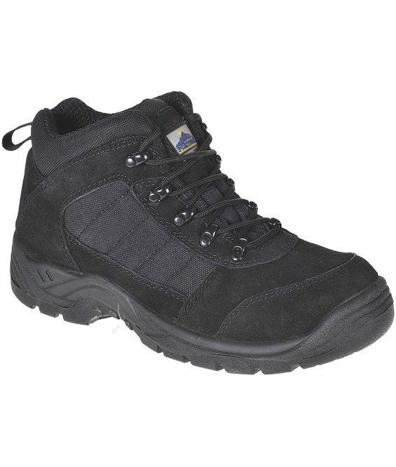 Scarponcino S1P Trouper in colore nero con fodera interna traspirante e occhielli chiusi. Puntale e lamina in acciaio per la massima protezione.